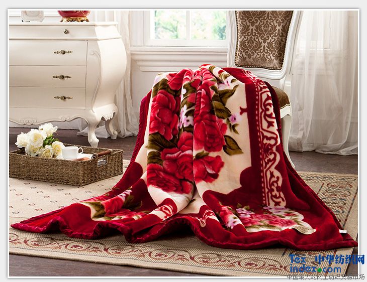 雙面都有豐厚毛絨的毛織物,表面有豐厚的毛絨,具有保暖性能的床上用毛織物, 也可用作床罩、壁毯等裝飾品。分純毛毯、混紡毛毯、化纖毛毯三類,按織造方法分有機織、簇絨、經編、針刺、縫編等。毯面花式有提花、印花、素色、鴛鴦色、道子、格子等。毯面風格有絨面型、立絨型、順毛型、滾球型和水紋型等。彈性和保暖性強,質地厚實。主要用作床上蓋被,兼作床罩或壁毯等裝飾品。毛毯的外觀形象多樣,有豐滿卷縮的絨面型,絨毛挺立又富有絲絨感的立絨型,絨毛順而長的順毛型,狀似羔皮的滾球型,以及不規(guī)則波紋的水紋型等。毛毯圖案配色繁多,有幾何圖案