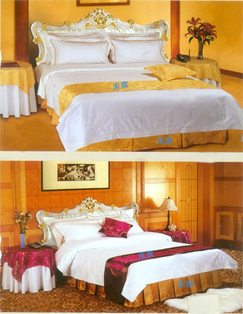 主要銷售客房;平紋 中,高檔【多種顏色40支-60支緞條】床單,被罩,枕套,枕芯,被子,墊被,床裙,床罩,床尾墊,浴簾 以及毛巾系列。