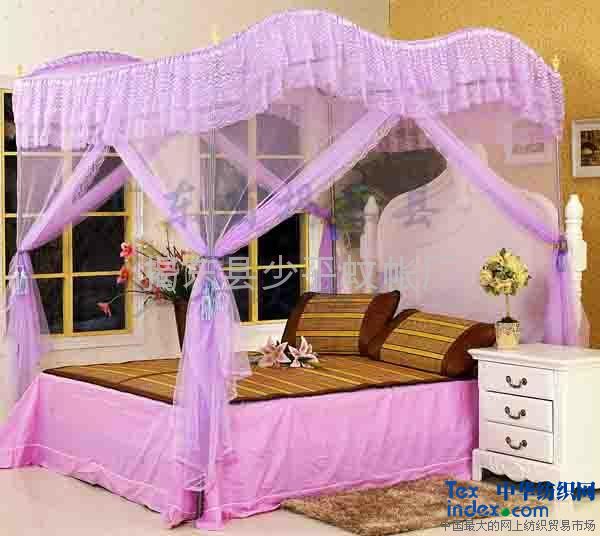 宮廷蚊帳,采用優(yōu)質不銹鋼支架,有白色、粉色、紫色及米黃四種顏色。