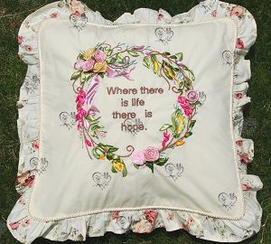 “慧心絲帶繡”是以絲、緞帶及毛線等為織繡素材,運用絲、緞帶及毛線等之材質(zhì)、粗細、鮮艷色澤變化等特性;織繡設(shè)計圖案,完全不受布料的限制。相較比十字繡要快捷、易懂、易學(xué),織繡出之作品色澤豐富華麗、立體層次感強。讓人有耳目一新獨特的感覺,充份展現(xiàn)了絲帶繡的清新淡雅和華麗高貴,可與絲綢繡相媲美。產(chǎn)品美工圖案設(shè)計是專業(yè)設(shè)計師精心策劃以各地方人文、花草、吉祥、祈福、納財、喜慶為主軸,圖案設(shè)計時尚,文化、人文韻味濃厚。絕對是家庭、喜慶裝飾,饋贈親友,個性使用的最佳選擇。產(chǎn)品種類包括:抱枕、靠枕、紙巾盒、手機套、首飾包、化妝包、手提包、桌旗、桌布、掛畫、窗簾等。更全新推出“我型我繡”DIY組合套件包,依個性喜好舞繡出自我風(fēng)格、揮灑創(chuàng)意于不同衣飾或棉織物品上,深受大眾所喜好。 |
