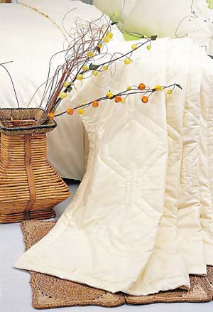 最好的蠶絲被應該是用100%的桑蠶絲做填充物。因蠶在生長過程中不能碰農藥等化學物品,蠶絲被稱得上最綠色環保的被子。它可以讓皮膚自由地排汗、分泌,保持皮膚清潔,令人倍感舒適。