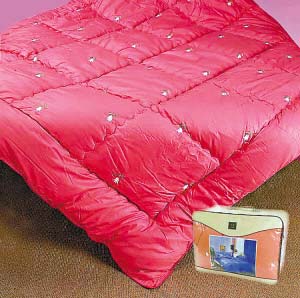 小貼士:應注意羽絨被子是否有異味、是否有明顯鉆絨現象。優質羽絨被是用高密度的經緯紗編織而成,摸起來不應有“嚓嚓”聲。