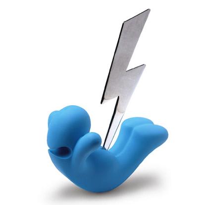 這是一款專門用來割開信封和包裹的開封器,它本身采用了閃電的造型,配合著一個卡通造型的底座使得這款原本非常普通的產品頓時趣味倍增。