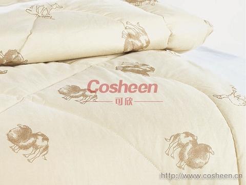 可欣駝絨被的內(nèi)胎選用優(yōu)質(zhì)駝絨和纖細(xì)羊毛絨混合配比,經(jīng)去味、洗滌、消毒、梳紡等流程精制而成,無菌無異味無雜質(zhì),手感蓬松柔軟,保暖效果是太空棉的三倍,使用壽命是棉花的十倍。